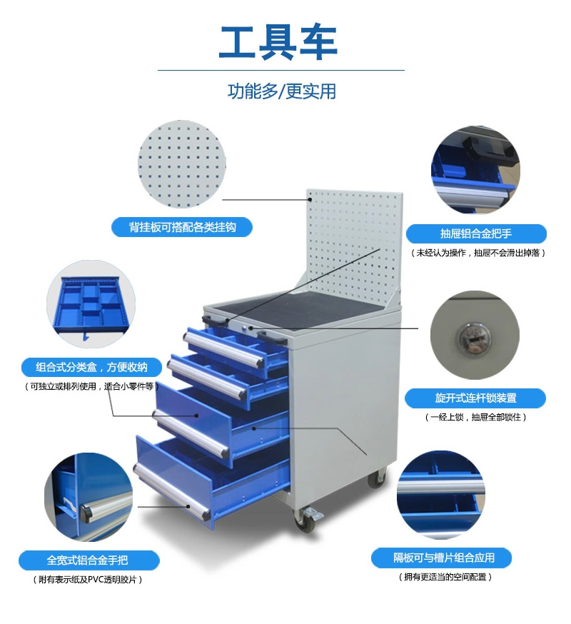 1、工具車(chē)是可以移動(dòng)的工具柜,適合在生產(chǎn)現(xiàn)場(chǎng)安全、合理地運(yùn)送工具和配件。